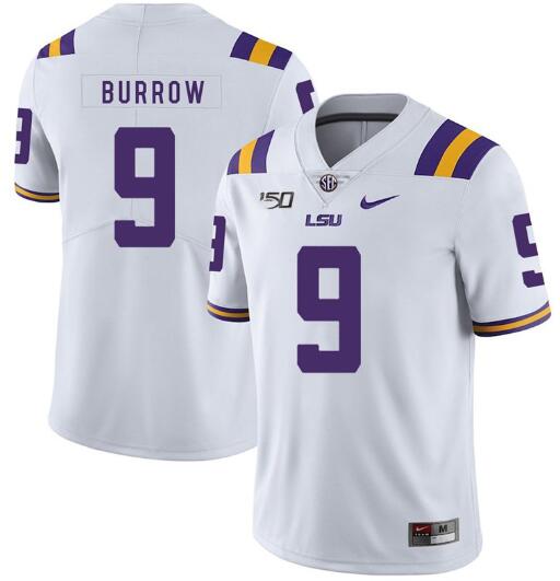Men's LSU Tigers #9 Joe Burrow 2019 White 150th Anniversary Stitched NCAA Jersey