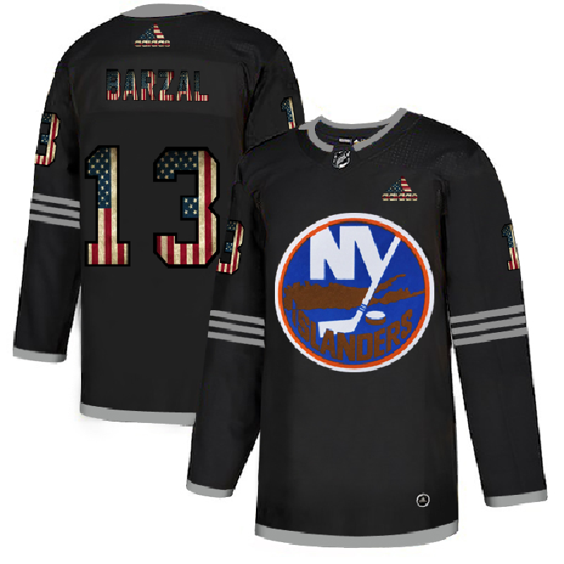 Men's New York Islanders #13 Mathew Barzal 2020 Grey USA Flag Stitched NHL Jersey