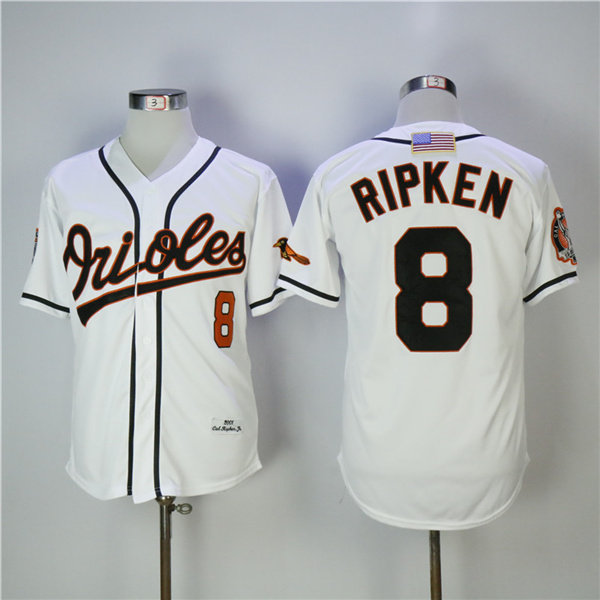 Men's Baltimore Orioles #8 Cal Ripken Mitchell And Ness White Throwback Stitched MLB Jersey