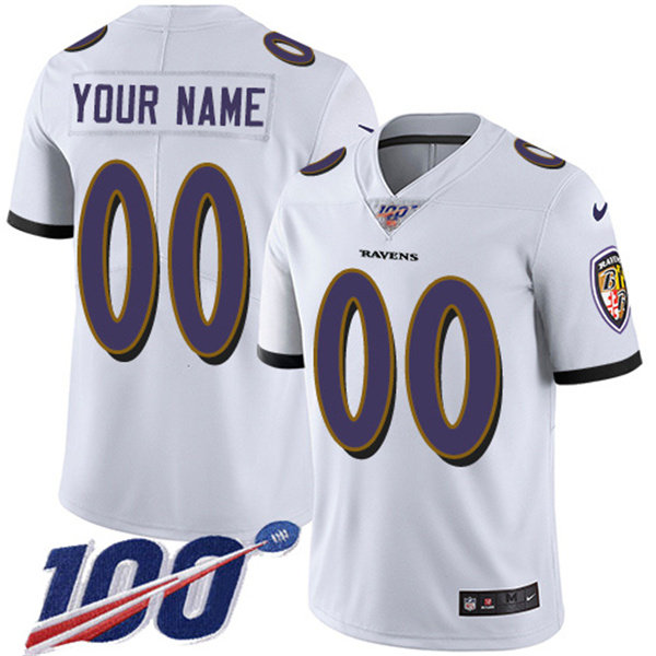 Men's Baltimore Ravens ACTIVE PLAYER Custom White 100th Season Vapor Untouchable Limited Stitched NFL Jersey