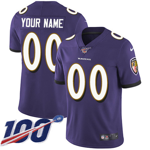 Men's Baltimore Ravens ACTIVE PLAYER Custom Purple 100th Season Vapor Untouchable Limited Stitched NFL Jersey