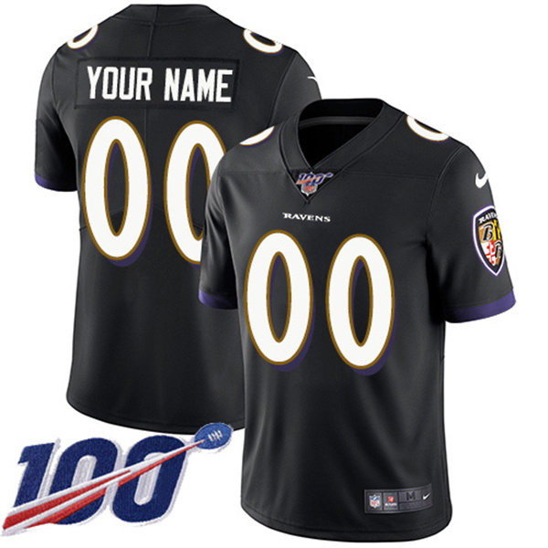 Men's Baltimore Ravens ACTIVE PLAYER Custom Black 100th Season Vapor Untouchable Limited Stitched NFL Jersey