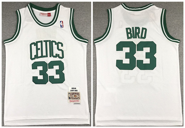 Men's Boston Celtics #33 Larry Bird 1985-86 White Throwback Stitched Jersey
