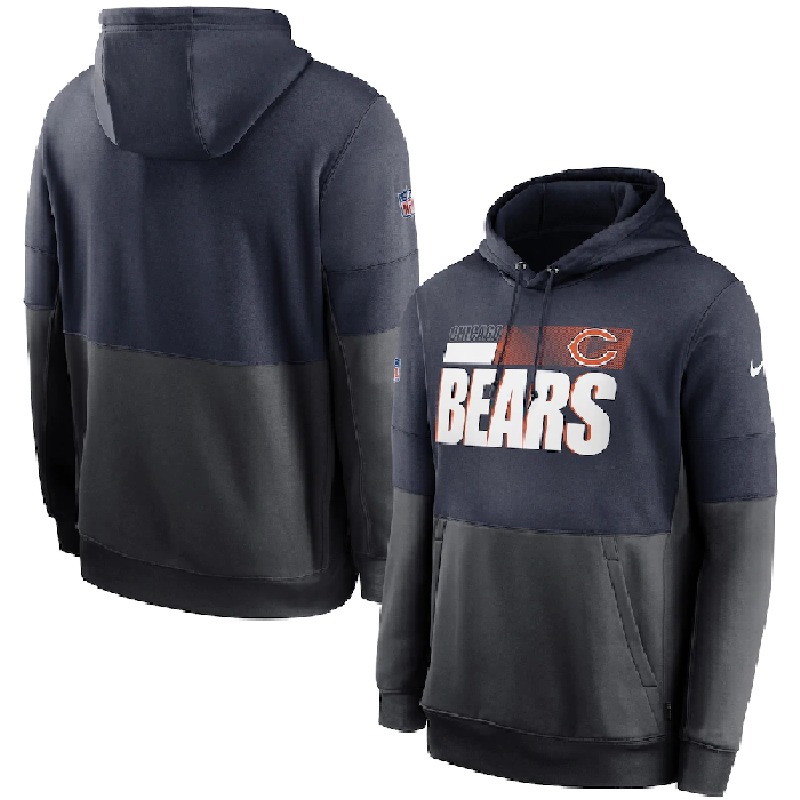 Men's Chicago Bears Navy/Charcoal Sideline Impact Lockup Performance Pullover Hoodie