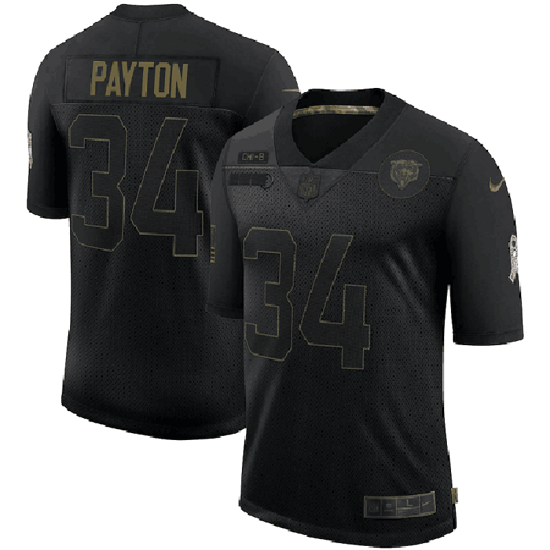 Men's Chicago Bears #34 Walter Payton 2020 Black Salute To Service Limited Stitched Jersey