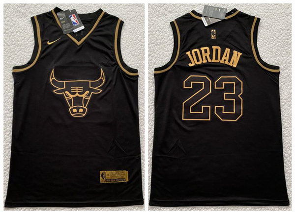 Men's Chicago Bulls #23 Michael Jordan Black Gold Edition Stitched Jersey