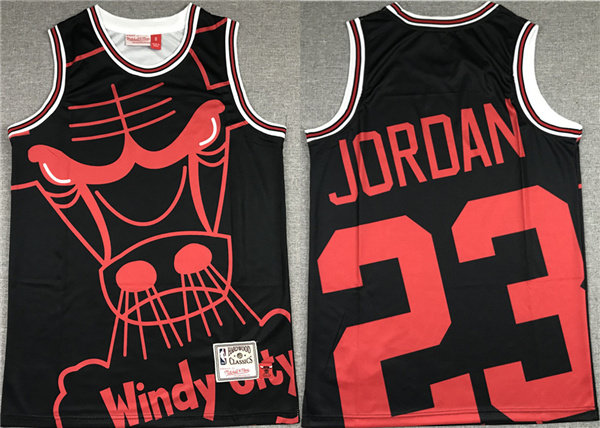 Men's Chicago Bulls #23 Michael Jordan Black Big face Stitched Jersey