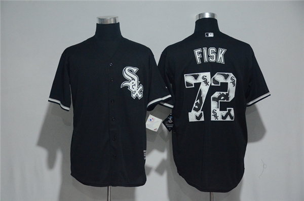 Men's Chicago White sox #72 Carlton Fisk black Team Logo Print Cool Base Stitched MLB Jersey