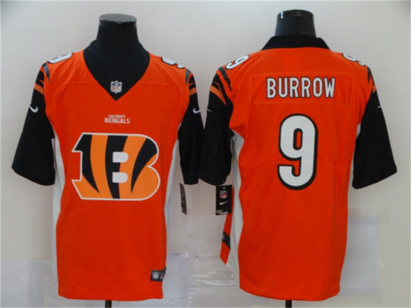 Men's Cincinnati Bengals #9 Joe Burrow Orange Team Big Logo Limited Stitched NFL Jersey