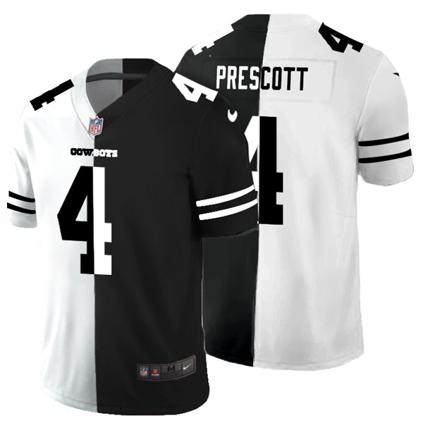 Men's Dallas Cowboys #4 Dak Prescott Black White Split 2020 Stitched Jersey