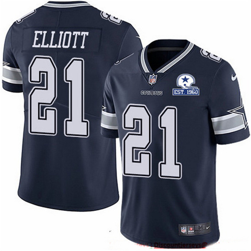 Men's Dallas Cowboys #21 Ezekiel Elliott Navy With Established In 1960 Patch Limited Stitched Jersey