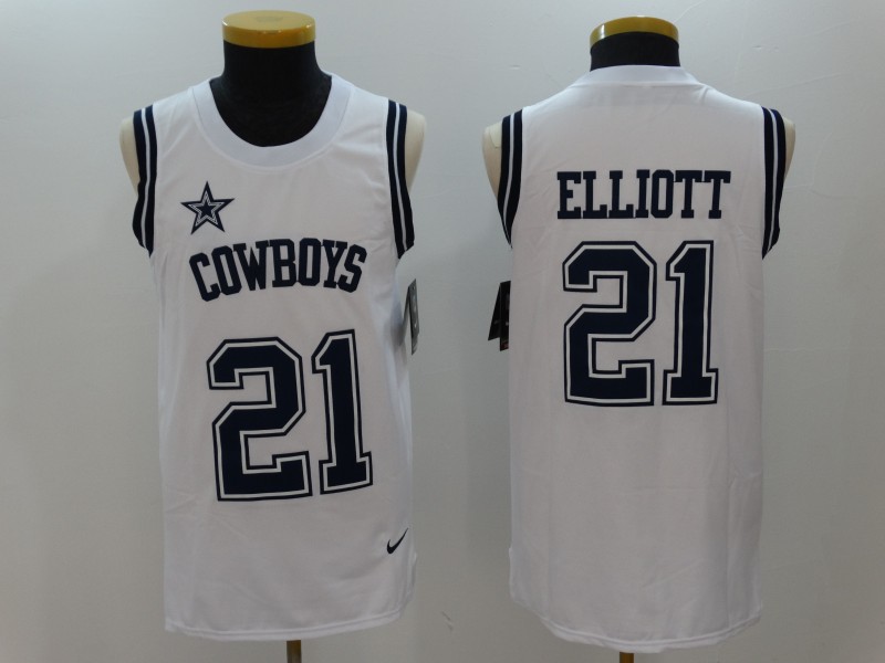 Men's Dallas Cowboys #21 Ezekiel Elliott White Limited Tank Top Jersey