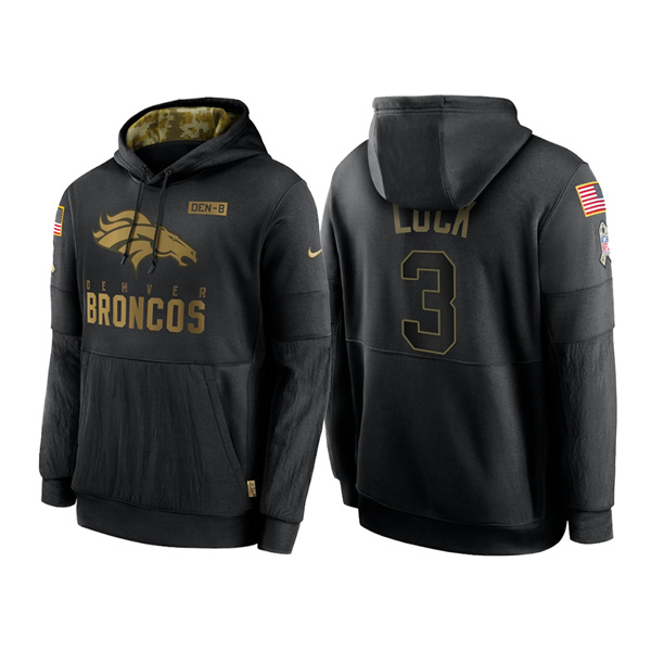 Men's Denver Broncos #3 Drew Lock 2020 Black Salute to Service Sideline Performance Pullover Hoodie