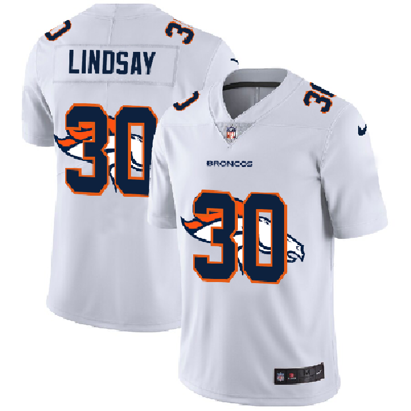 Men's Denver Broncos #30 Phillip Lindsay White Shadow Logo Limited Stitched Jersey