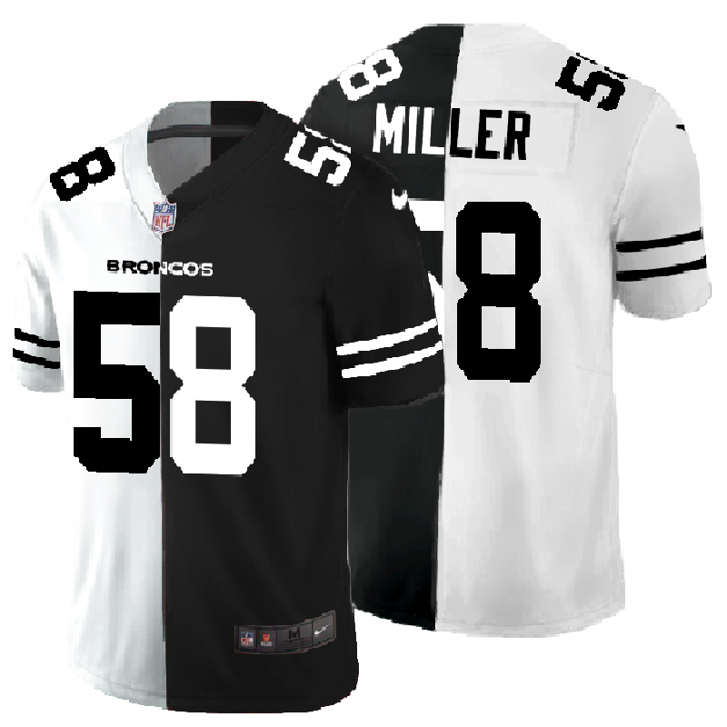 Men's Denver Broncos #58 Von Miller Black & White Split Limited Stitched Jersey