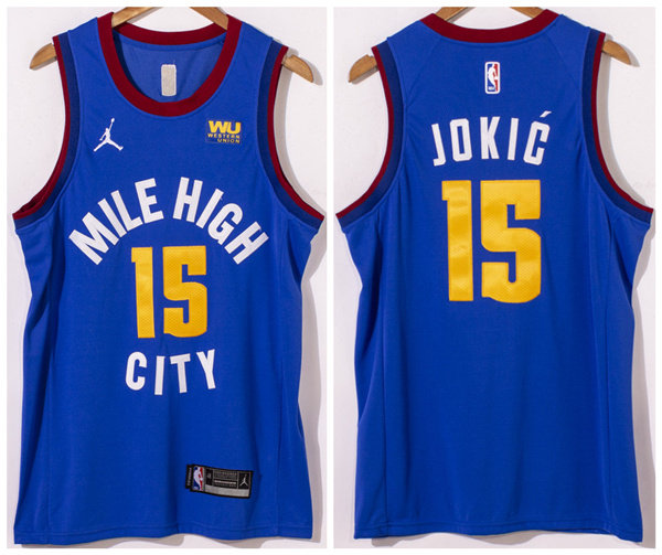 Men's Denver Nuggets #15 Nikola Jokic Blue Stitched Jersey