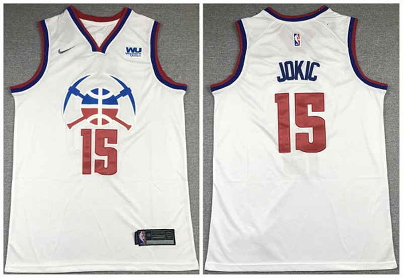 Men's Denver Nuggets #15 Nikola Jokic White Stitched Jersey