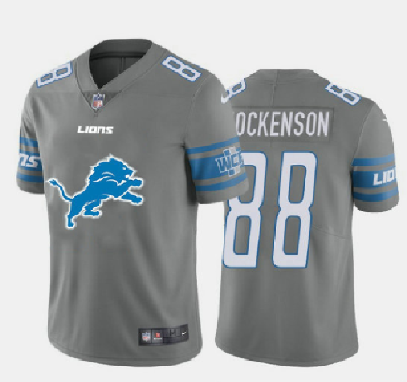 Men's Detroit Lions #88 T.J. Hockenson 2020 Grey Team Big Logo Limited Stitched Jersey