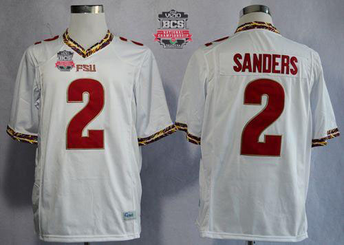 Seminoles #2 Deion Sanders New White 2014 BCS Bowl Patch Stitched NCAA Jersey