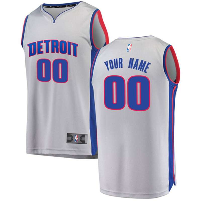 Men's Detroit Pistons Active Player Grey Custom Stitched NBA Jersey
