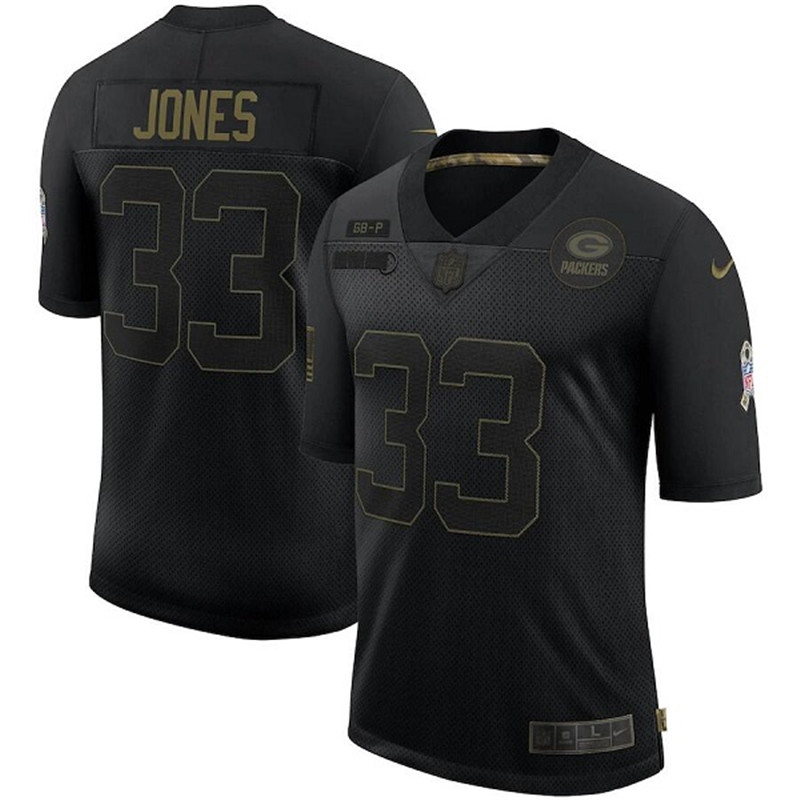 Men's Green Bay Packers #33 Aaron Jones 2020 Black Salute To Service Limited Stitched Jersey