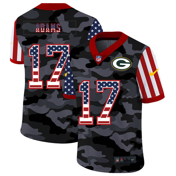 Men's Green Bay Packers #17 Davante Adams 2020 Camo USA Flag Limited Stitched Jersey