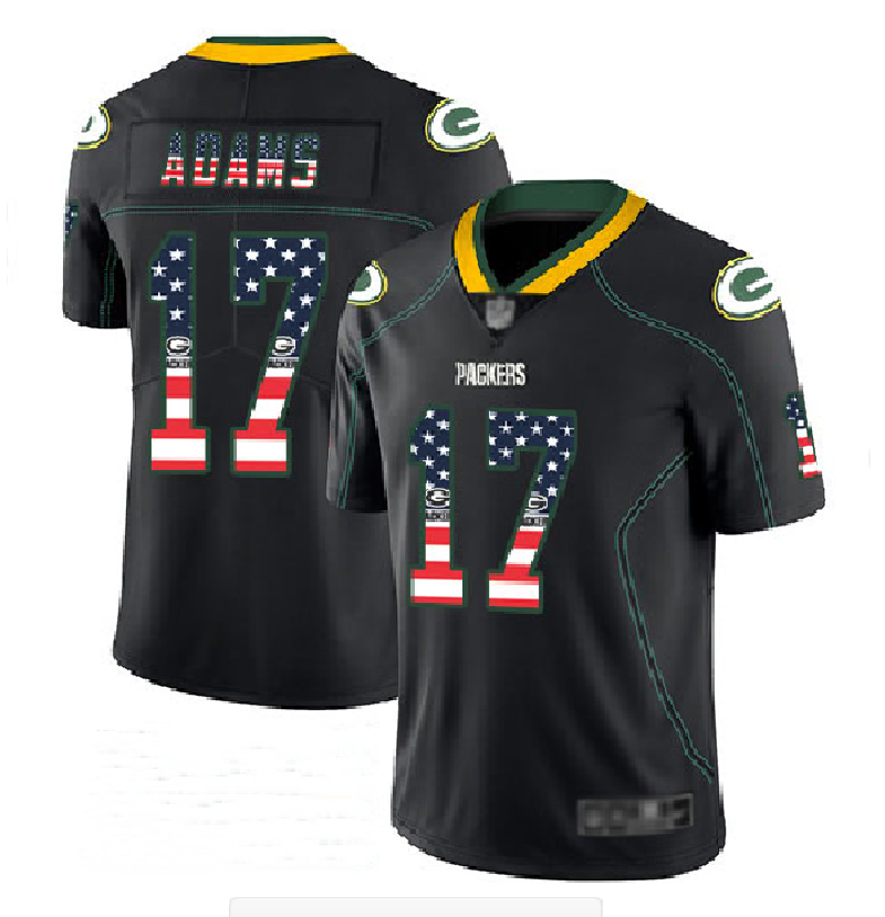 Men's Green Bay Packers #17 Davante Adams Black USA Flag Color Rush Fashion Stitched NFL Jersey