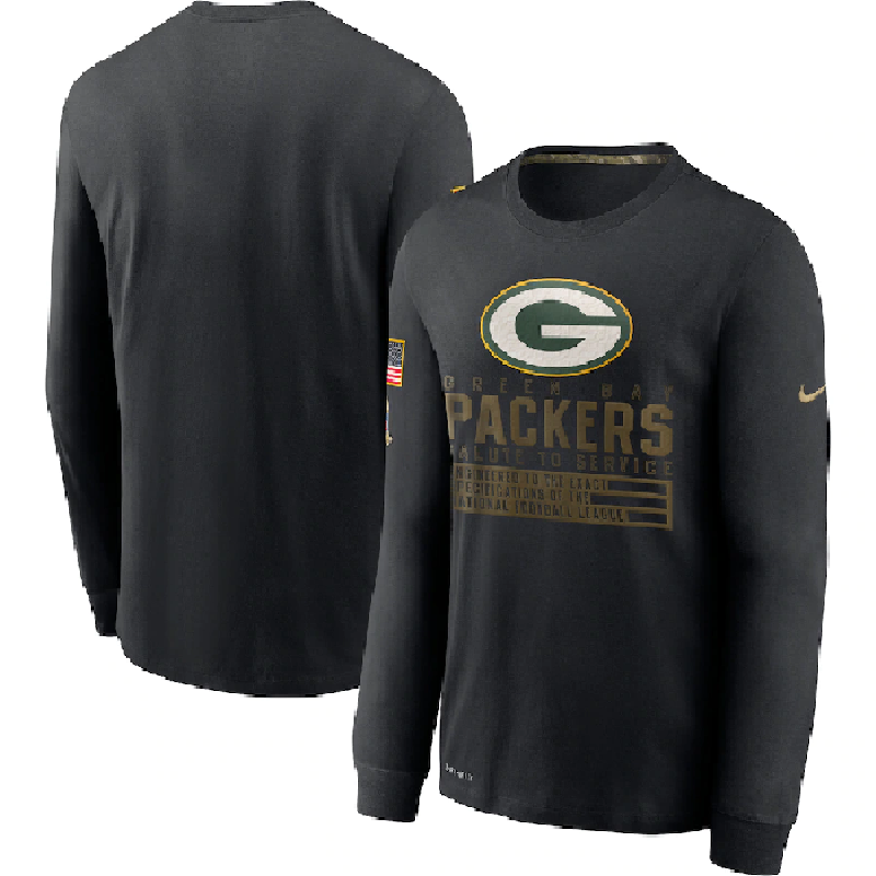 Men's Green Bay Packers 2020 Black Salute to Service Sideline Performance Long Sleeve T-Shirt
