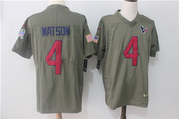 Men's Nike Houston Texans #4 Deshaun Watson Olive Salute To Service Limited Stitched NFL Jersey