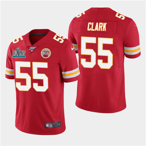 Men's Kansas City Chiefs #55 Frank Clark Red Super Bowl LIV With 100th Season Patch Vapor Untouchable Limited Stitched NFL Jersey