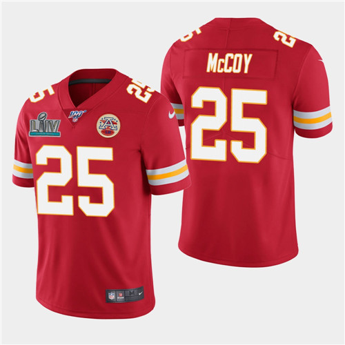 Men's Kansas City Chiefs #25 LeSean McCoy Red Super Bowl LIV With 100th Season Patch Vapor Untouchable Limited Stitched NFL Jersey