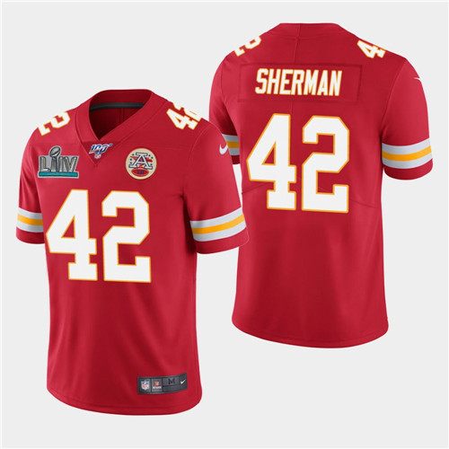 Men's Kansas City Chiefs #42 Anthony Sherman Red Super Bowl LIV With 100th Season Patch Vapor Untouchable Limited Stitched NFL Jersey