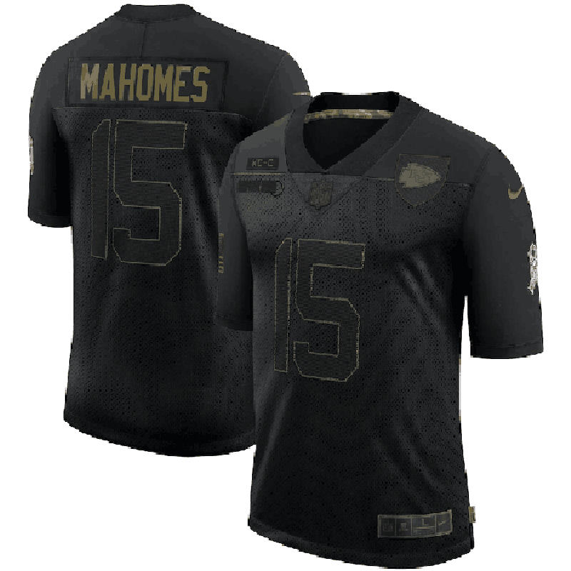 Men's Kansas City Chiefs #15 Patrick Mahomes Black 2020 Salute To Service Limited Stitched Jersey