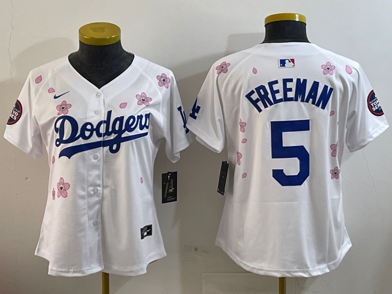 Women's Los Angeles Dodgers cherry blossom # 5 Freddie Freeman White Jerseys