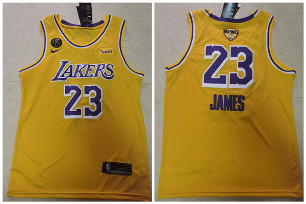 Men's Los Angeles Lakers #23 LeBron James 2020 Gold Finals Bound With KB Patch Stitched Jersey