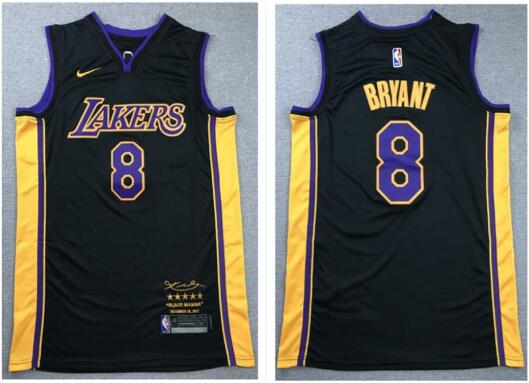 Men's Los Angeles Lakers #8 Kobe Bryant Black Gold Stitched NBA Jersey