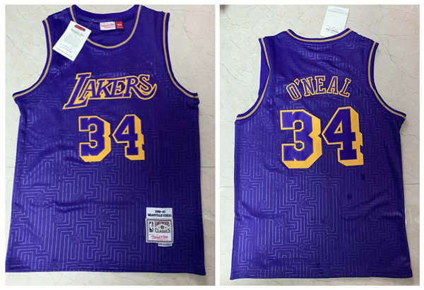 Men's Los Angeles Lakers #34 Shaquille O'Neal Purple 1996-1997 Limited Stitched Jersey