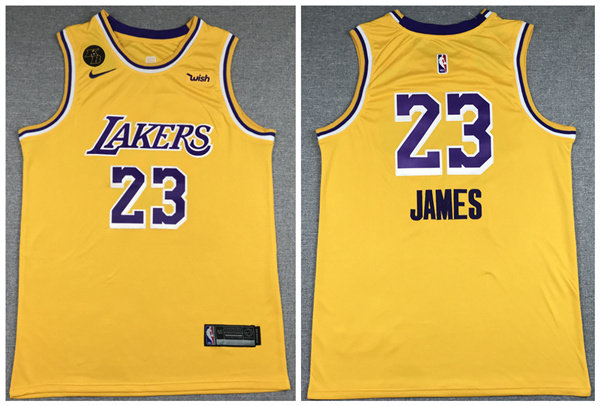 Men's Los Angeles Lakers #23 LeBron James Yellow With KB Patch Stitched Jersey