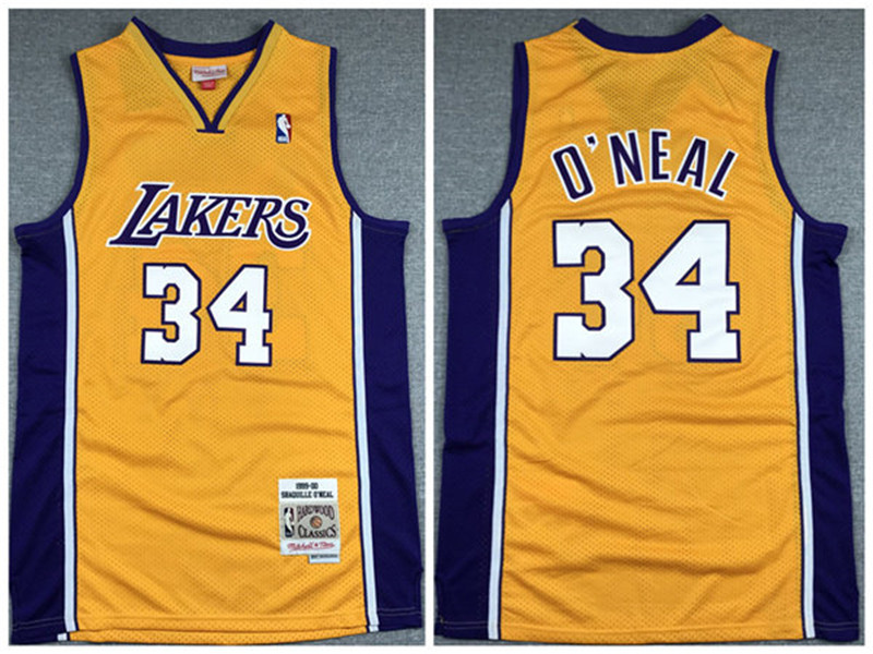 Men's Los Angeles Lakers #34 Shaquille O'Neal Gold 1999-00 Throwback Stitched Jersey