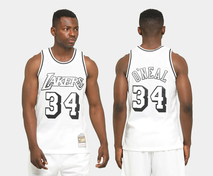 Men's Los Angeles Lakers #34 Shaquille O'Neal White Stitched NBA Jersey