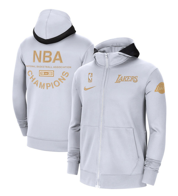 Men's Los Angeles Lakers White 2020 Champions Ring Therma Flex Full-Zip NBA Hoodie