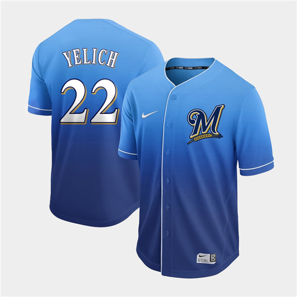 Men's Milwaukee Brewers #22 Christian Yelich Blue Fade Stitched MLB Jersey