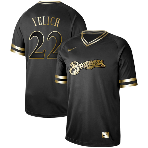 Men's Milwaukee Brewers #22 Christian Yelich Black Gold Stitched MLB Jersey