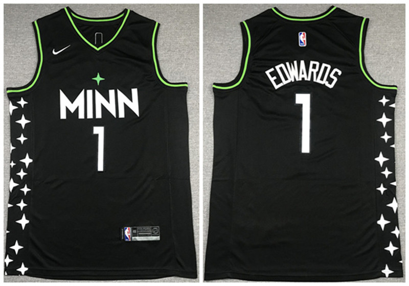 Men's Minnesota Timberwolves #1 Anthony Edwards Black City Swingman Stitched Jersey