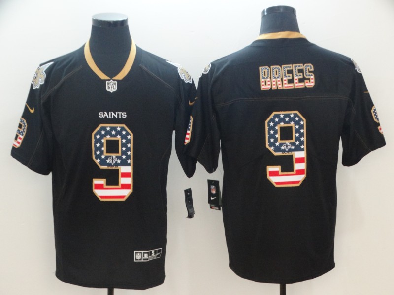 Men's New Orleans Saints #9 Drew Brees Black 2018 USA Flag Color Rush Limited Fashion NFL Stitched Jersey