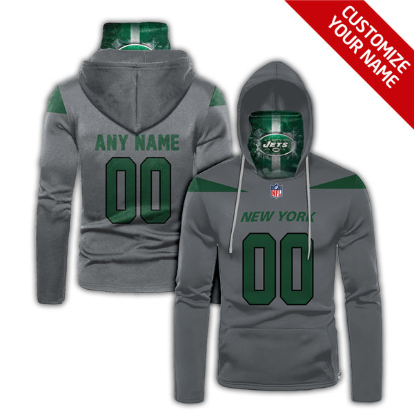 Men's New York Jets 2020 Grey Customize Hoodie Mask