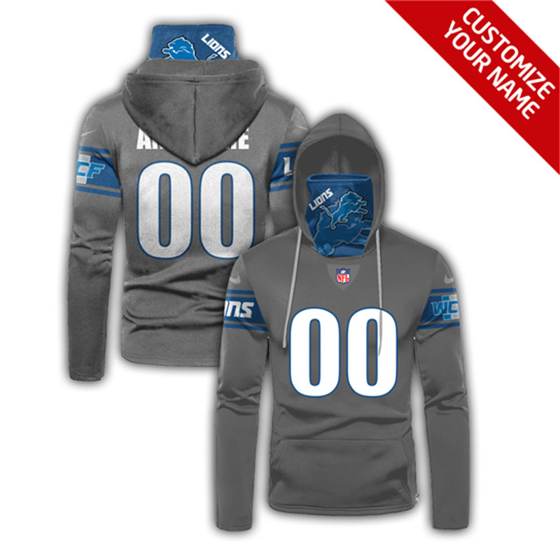 Men's Detroit Lions 2020 Grey Customize Hoodie Mask