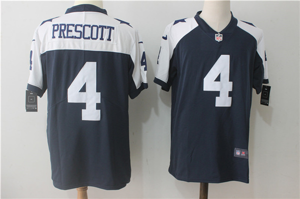 Men's Nike Dallas Cowboys #4 Dak Prescott Navy Blue Thanksgiving Stitched NFL Vapor Untouchable Limited Throwback Jersey