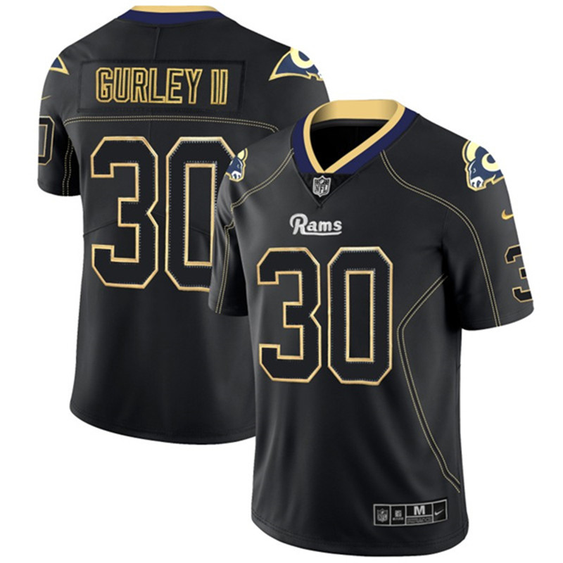 Men's Los Angeles Rams #30 Todd Gurley II NFL 2018 Lights Out Black Color Rush Limited Jersey
