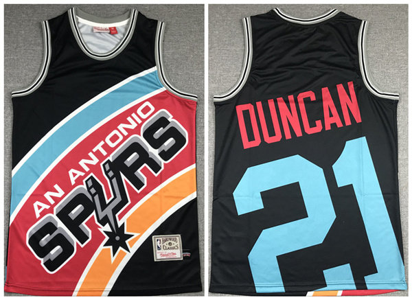Men's San Antonio Spurs #21 Tim Duncan Black Big Face Stitched Jersey
